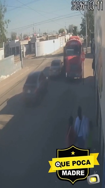 🟡Una unidad de transportes San Carlos con número económico 409, fue captada circula en sentido #contrario subiéndose a la banqueta, derribar una señal de alto y casi atr0p3llar a unos peatones, en el fraccionamiento Los Portales segunda sección, en #Mexicali, #BajaCalifornia.