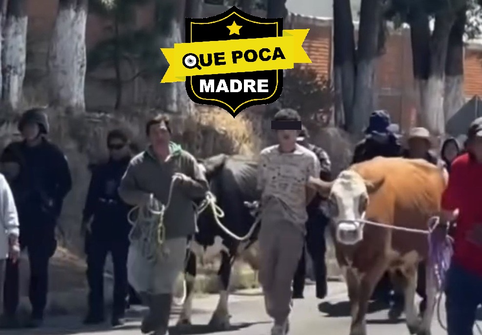 🟡Pobladores del municipio de #Calpan, #Puebla, amarraron y exhibieron a un presunto #ladrón de ganado, quien fue sorprendido en el momento en que intentaba llevarse tres vacas en la comunidad; finalmente fue entregado a la #policía.