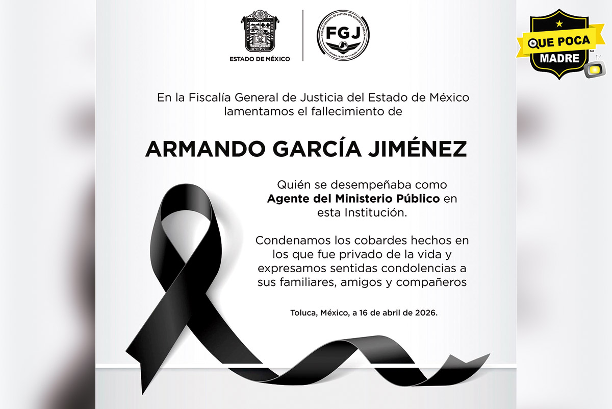 La Fiscalía del Estado de México emitió un mensaje en sus redes sociales para condenar el asesinato de su compañero.